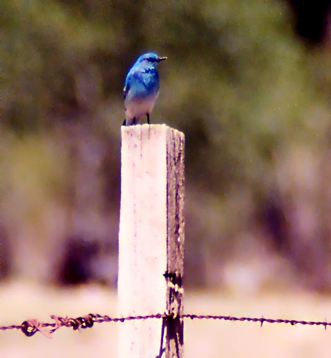 MOUNTAIN BLUEBIRD NEAR THE NORTH ENTRANCE OF YELLOWSTONE NATIONAL PARK